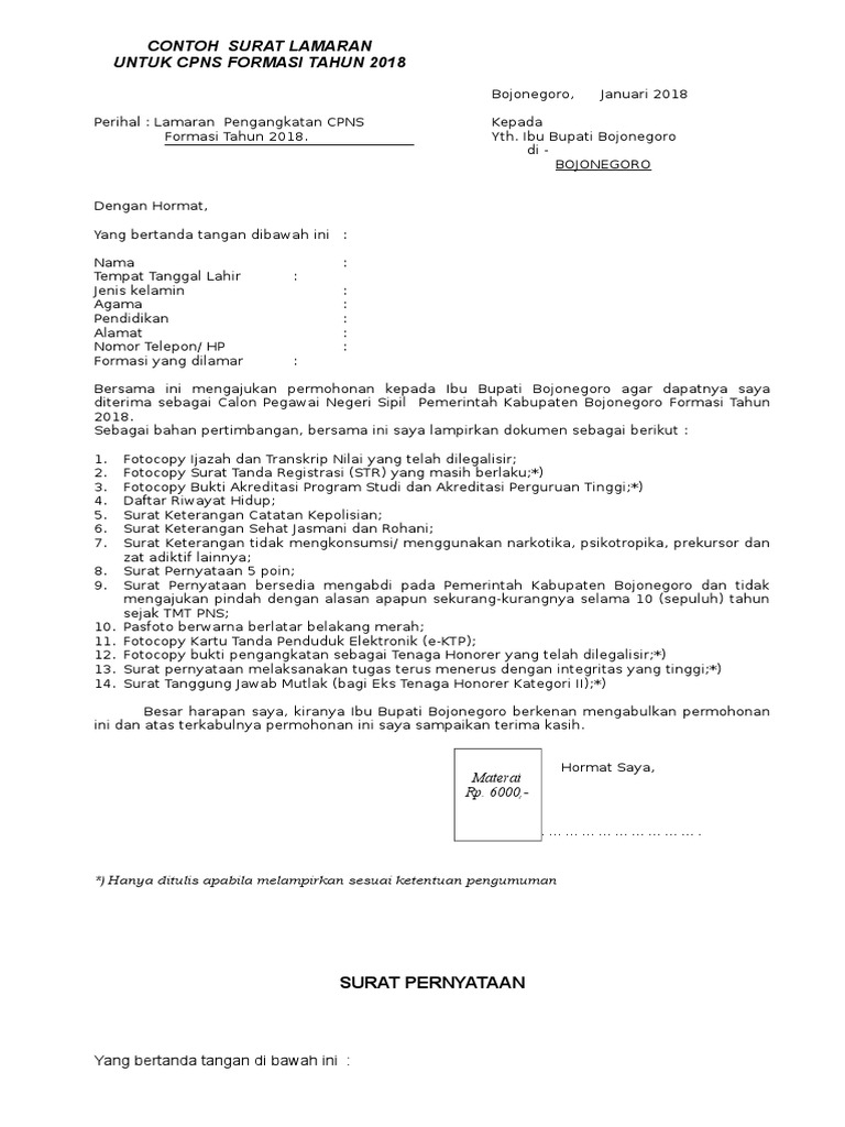 Perihal : Lamaran Pengangkatan CPNS Kepada