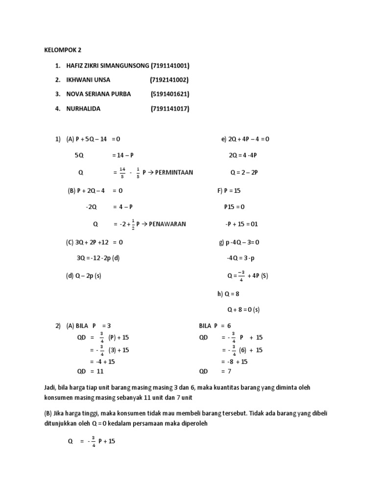Q = -2 + 2 P → PENAWARAN -P + 15 = 01