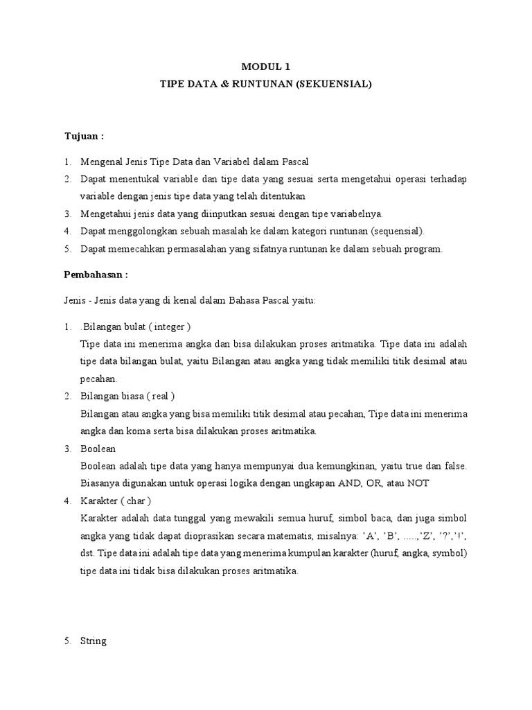 1. Mengenal Jenis Tipe Data dan Variabel dalam Pascal