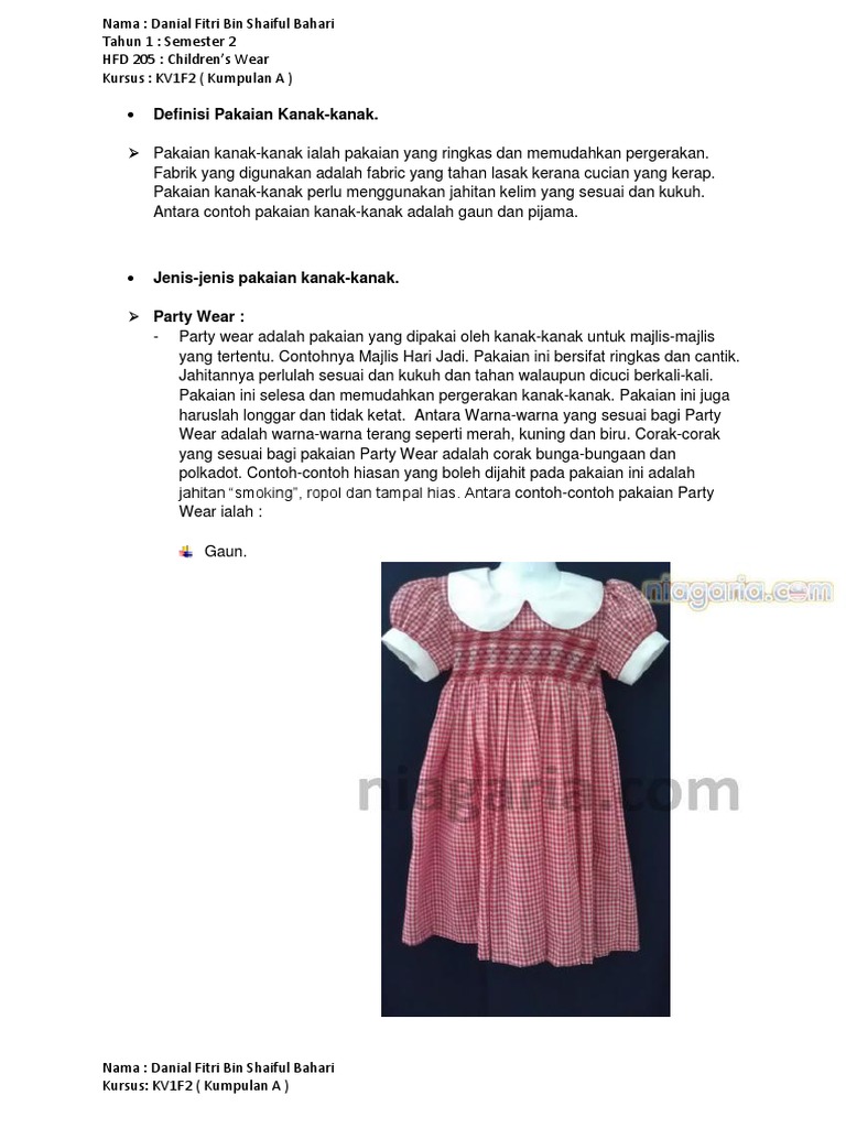 Antara contoh pakaian kanak-kanak adalah gaun dan pijama.