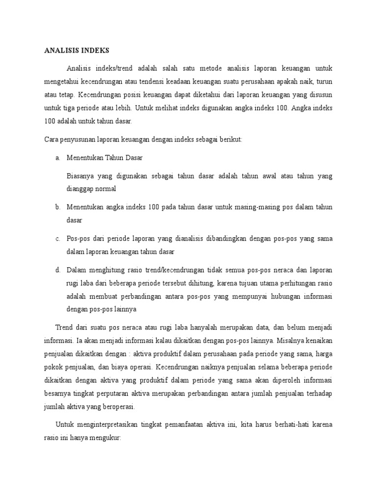 Analisis indeks/trend adalah salah satu metode analisis laporan keuangan untuk