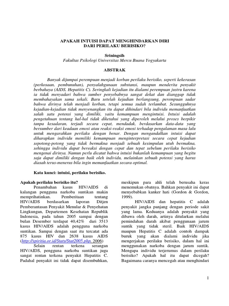 (http://spiritia.or.id/Stats/Stat2005.php, 2006) mengerjakan perilaku berisiko, dalam hal ini