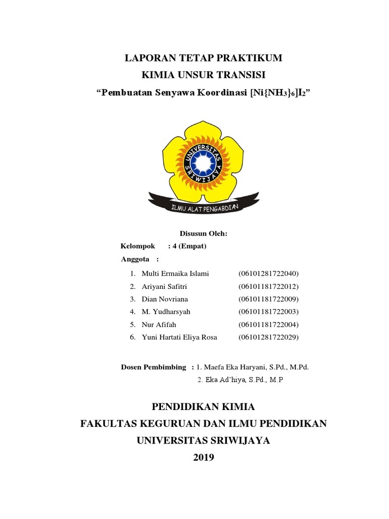 Gulo, F dan Desi. 2016. Panduan Praktikum Kimia Anorganik. Indralaya:
