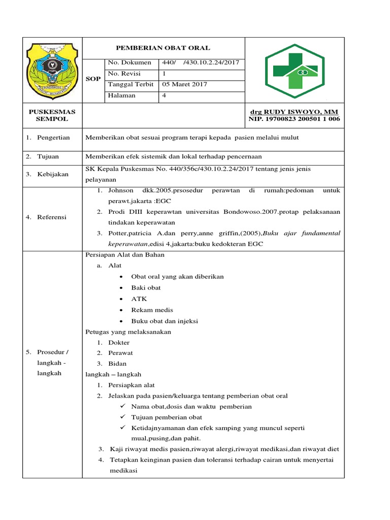 1. Pengertian Memberikan obat sesuai program terapi kepada pasien melalui mulut