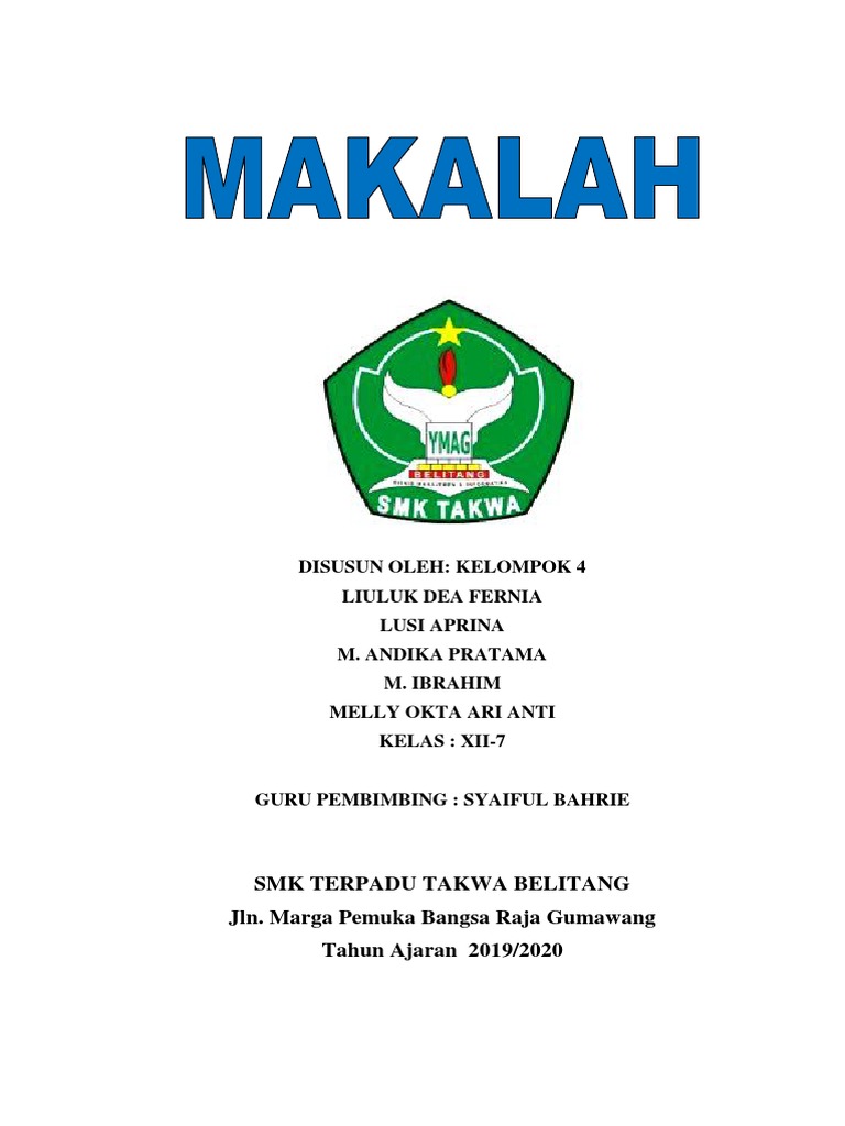 Asal Sekolah/Institusi : SMK Terpadu Takwa Belitang