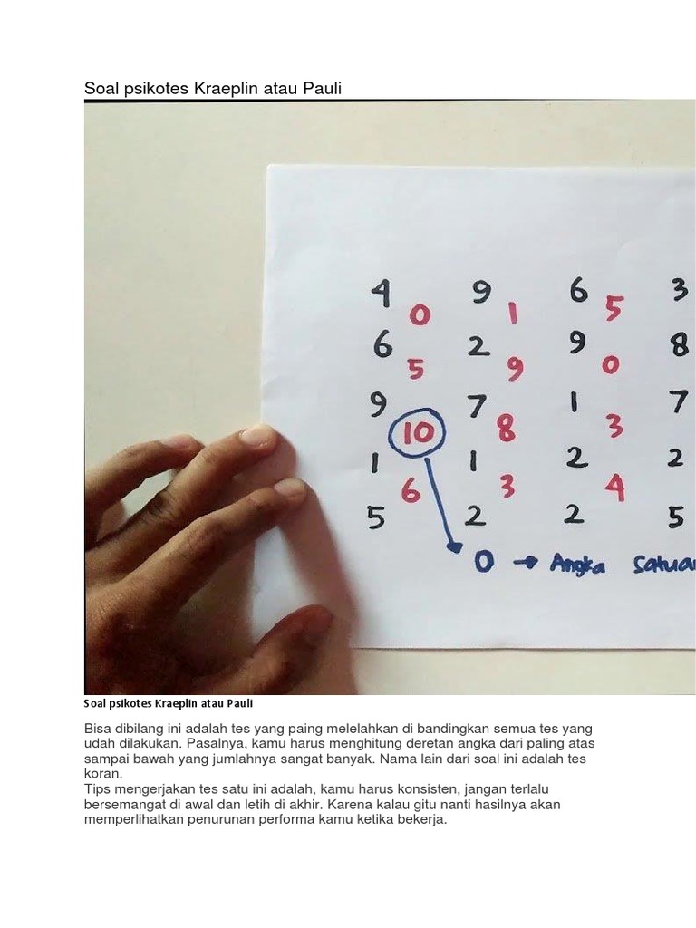 Soal psikotes Kraeplin atau Pauli