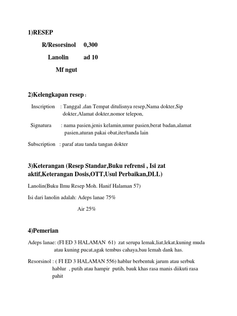 1)Resorsinol + air di gerus hingga larut + Adeps lanae sedikit demi