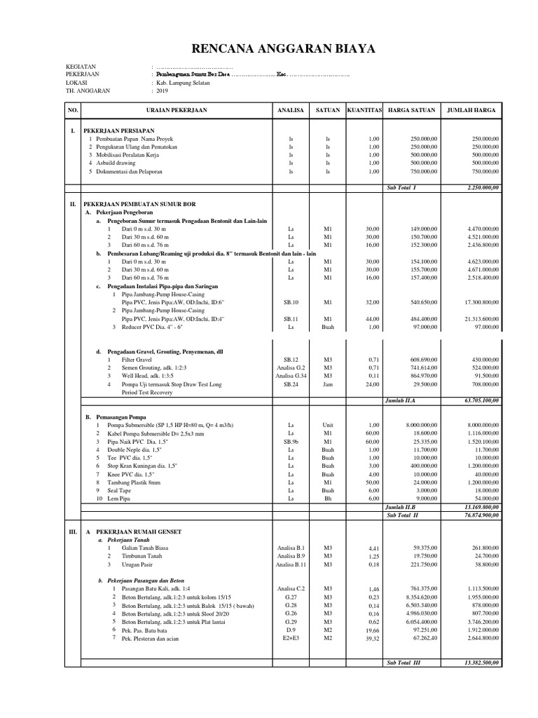 PEKERJAAN : Pembangunan Sumur Bor Desa ………………….. Kec. ………………………….