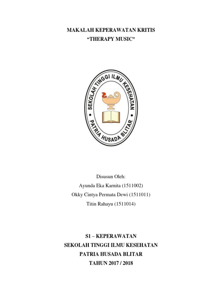 dan memahami tentang terapi musik . Penulis juga mengharapkan adanya kritik dan saran
