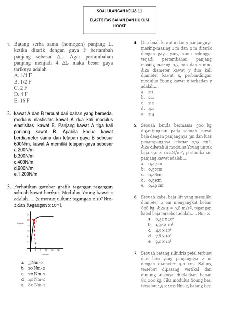elastisitas kawat B. Panjang kawat A tiga kali 5. Sebuah benda bermassa 500 kg
