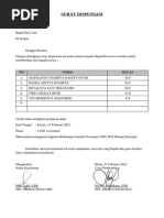 Perihal : Permohonan Dispensasi