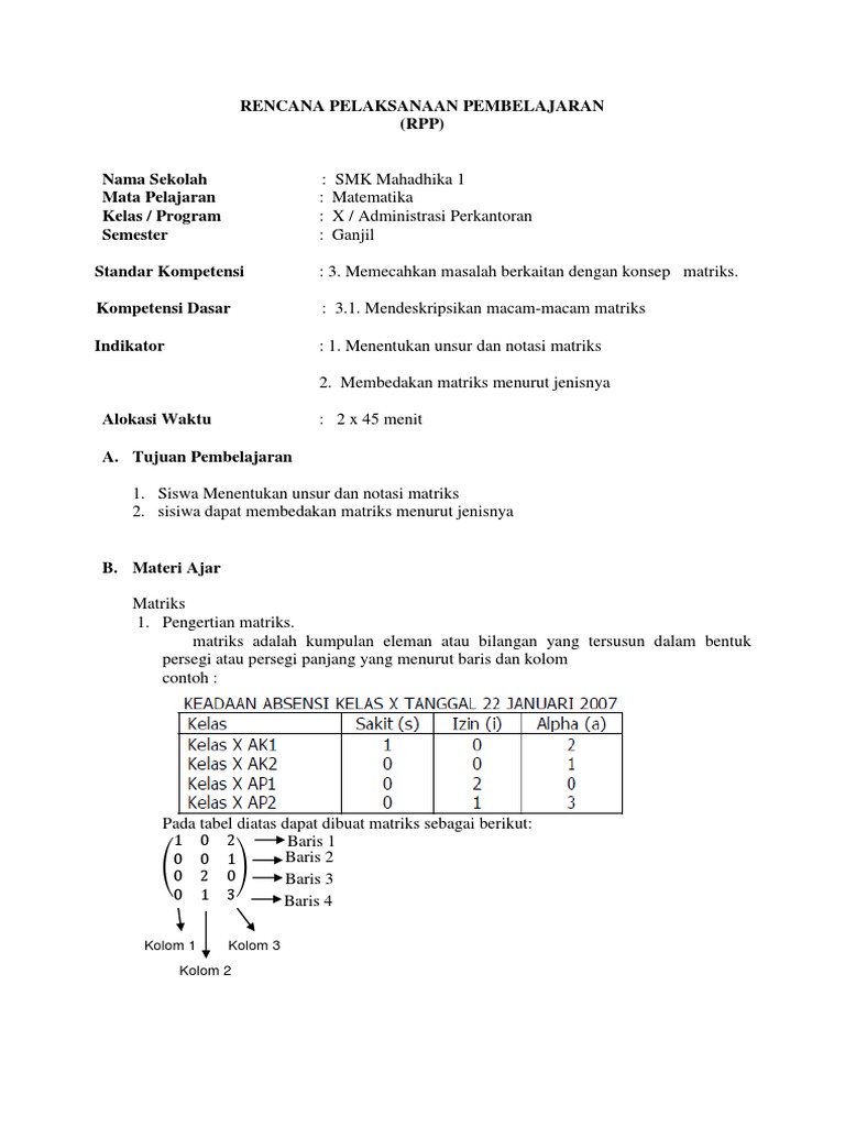 RPP Matriks KTSP