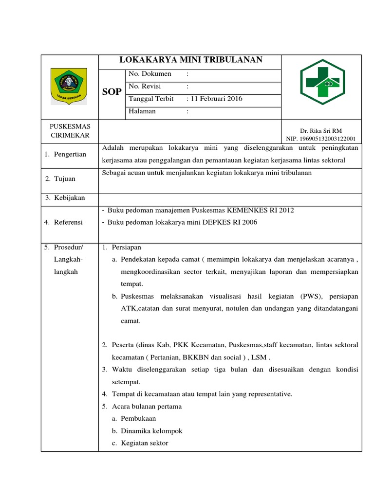 Sebagai acuan untuk menjalankan kegiatan lokakarya mini tribulanan