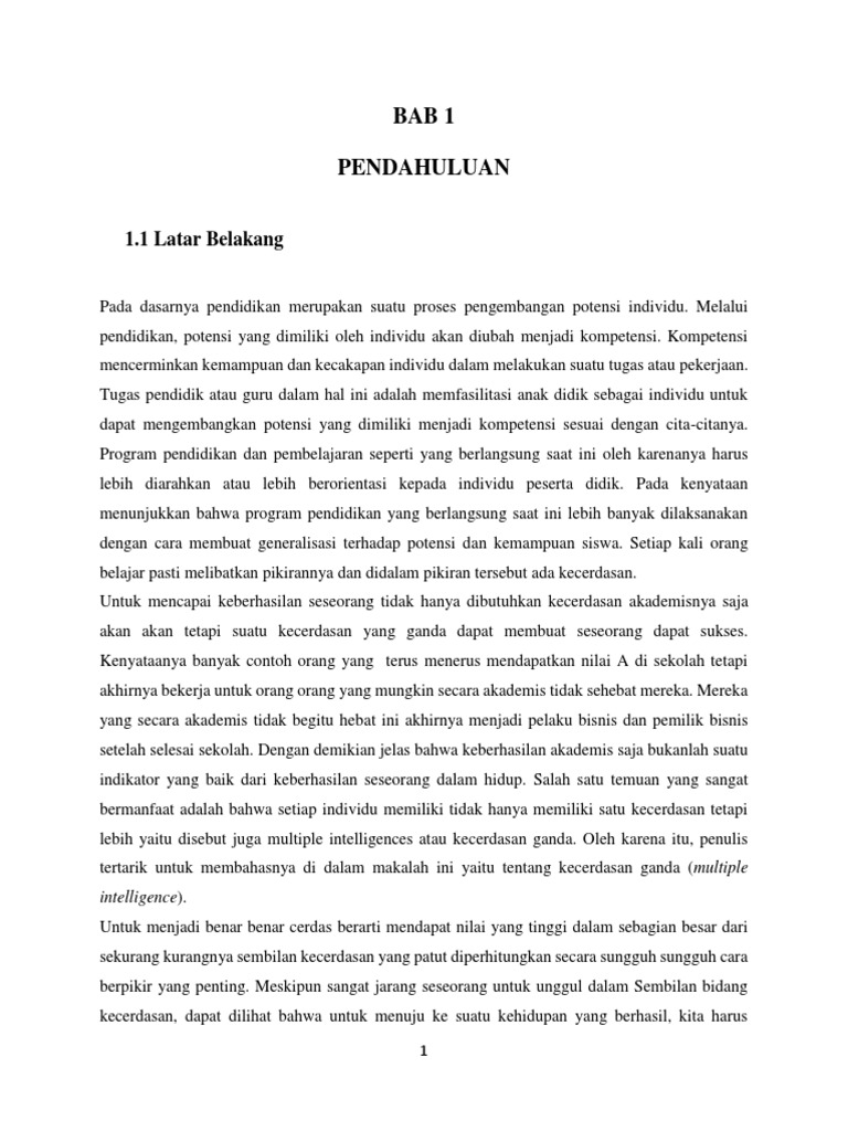lebih yaitu disebut juga multiple intelligences atau kecerdasan ganda. Oleh karena itu, penulis