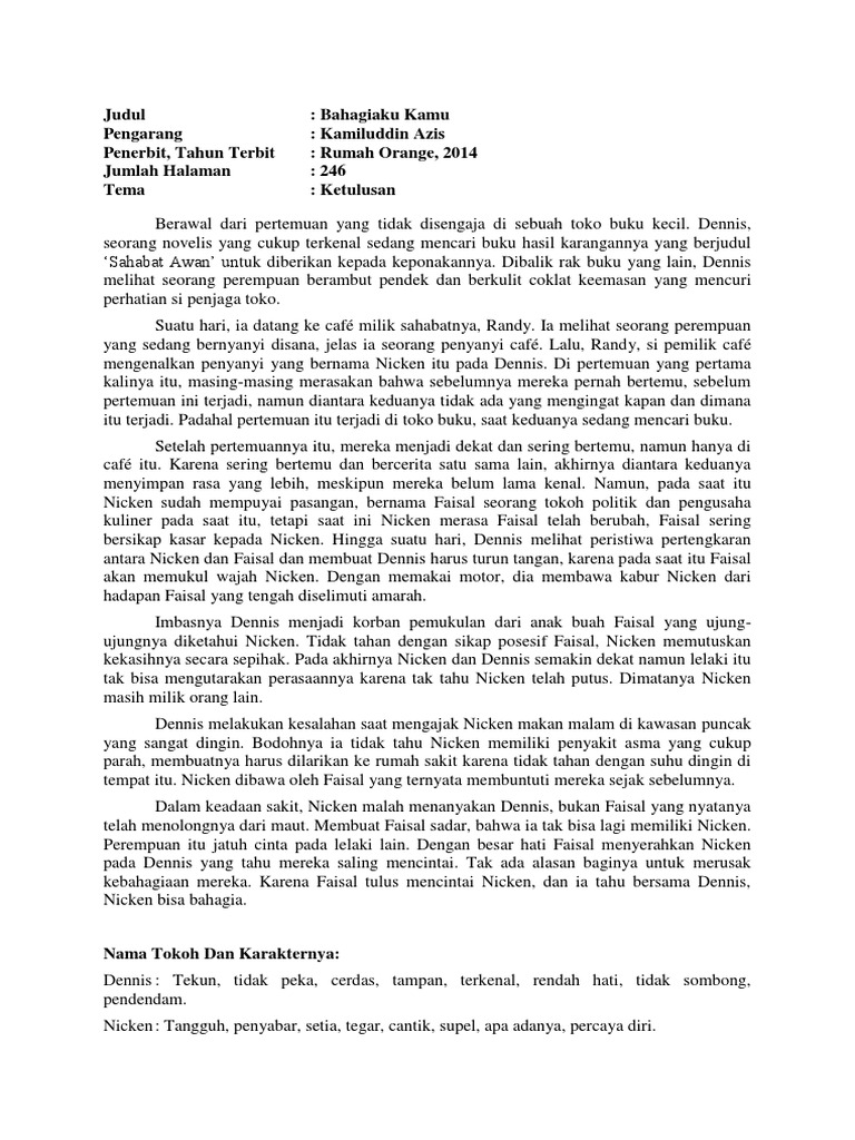 kebahagiaan mereka. Karena Faisal tulus mencintai Nicken, dan ia tahu bersama Dennis,