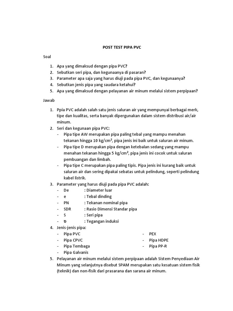 3. Parameter yang harus diuji pada pipa PVC adalah: