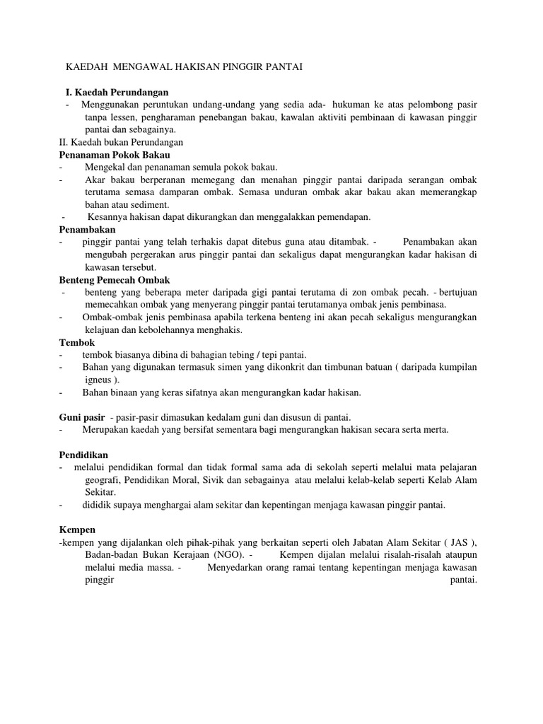 KAEDAH MENGAWAL HAKISAN PINGGIR PANTAI