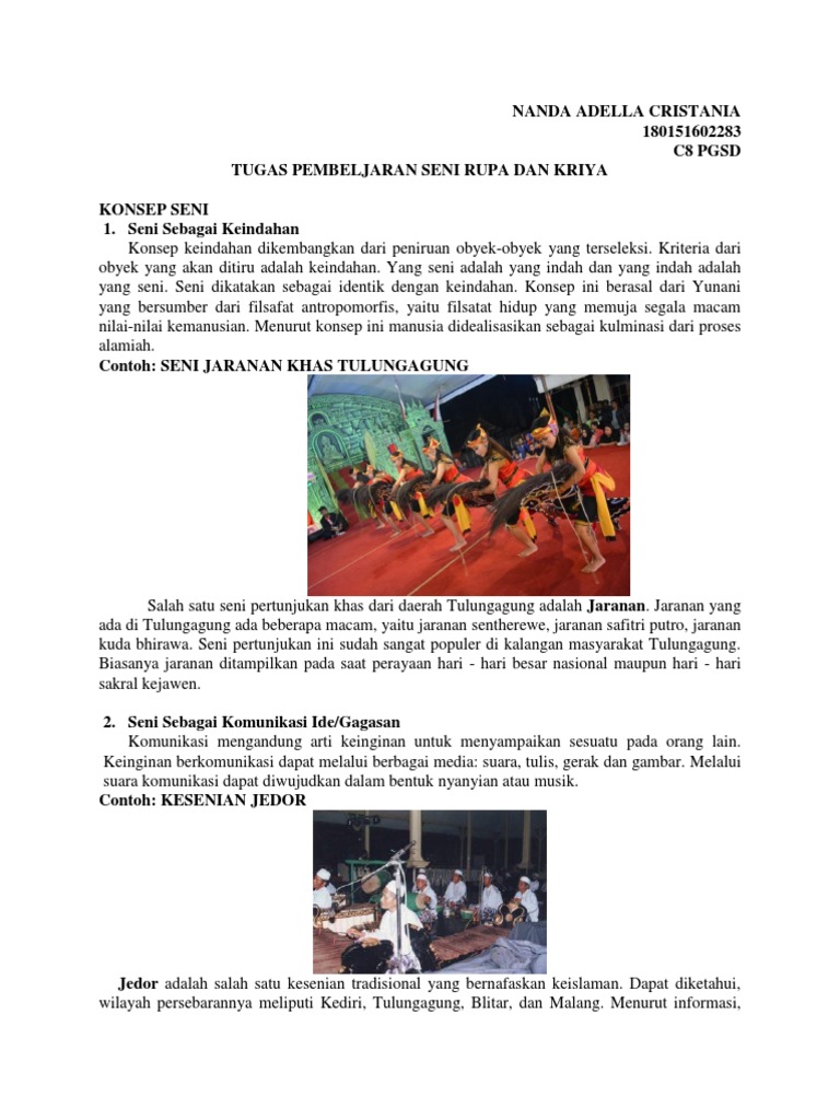 Contoh: SENI JARANAN KHAS TULUNGAGUNG