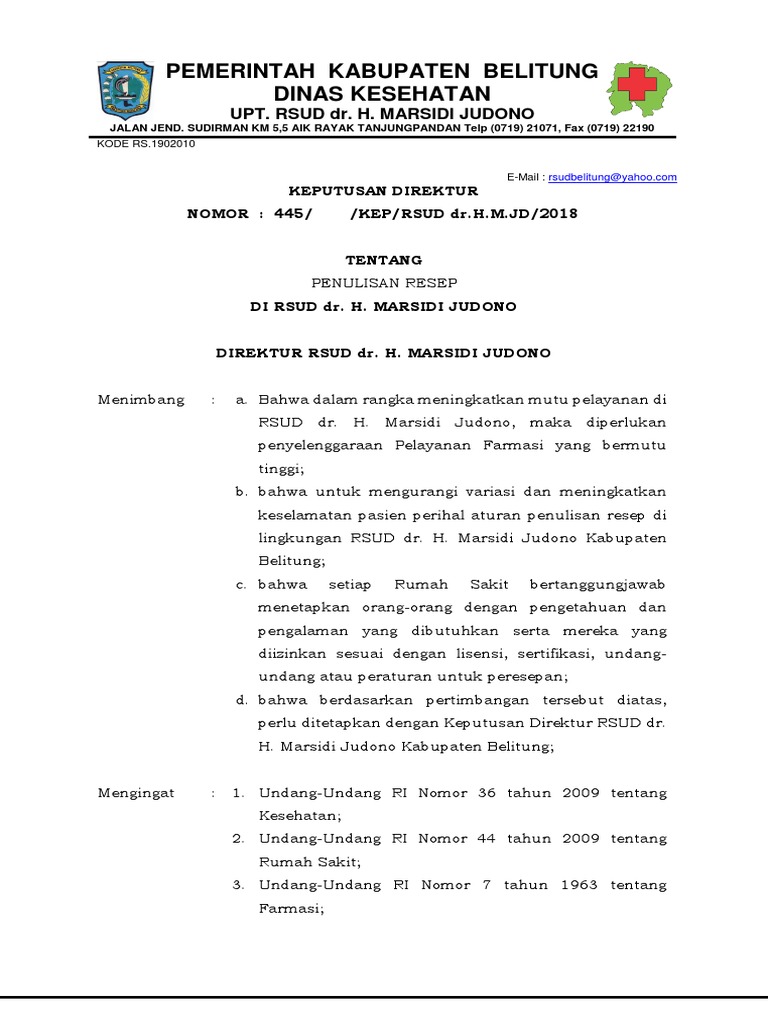 penulisan resep di lingkungan RSUD dr. H. Marsidi Judono dapat