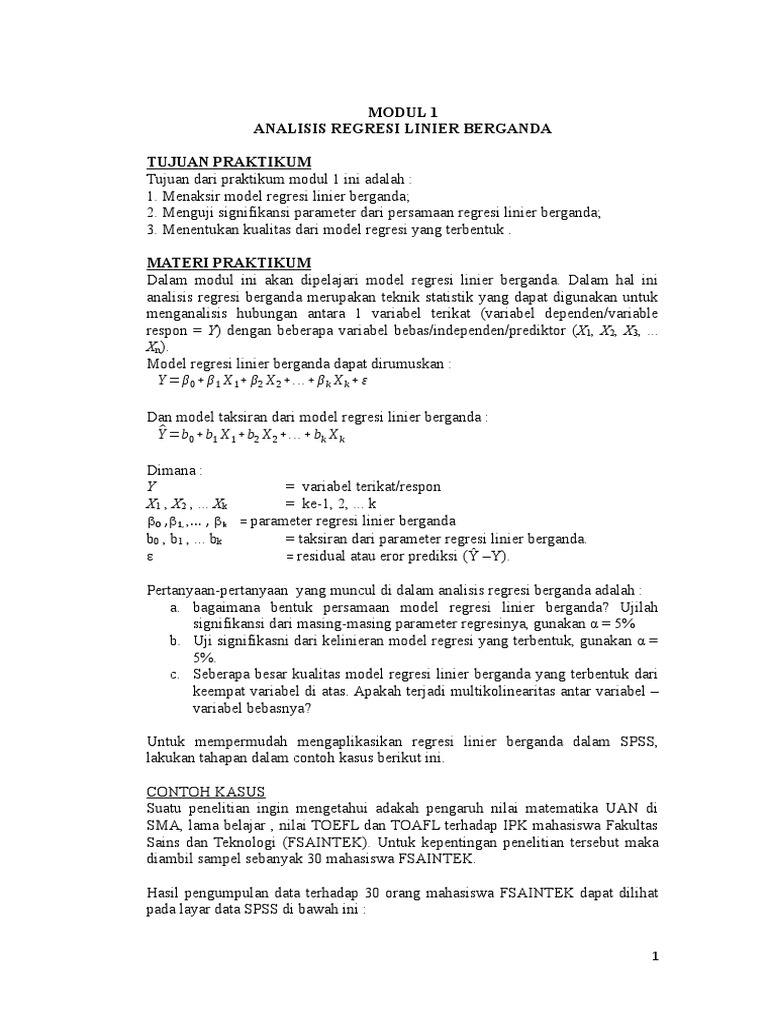 Dalam modul ini akan dipelajari model regresi linier berganda. Dalam hal ini