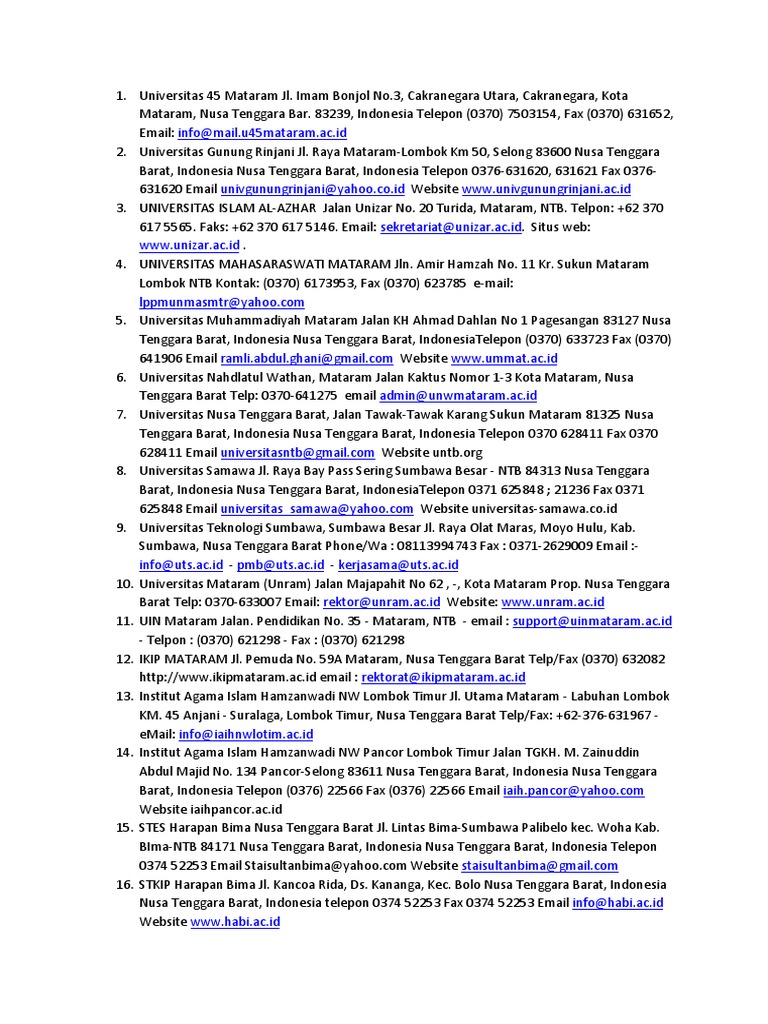 83115 Nusa Tenggara Barat, Indonesia Telepon (0370) 6156733 Fax (0341) 394702 Email