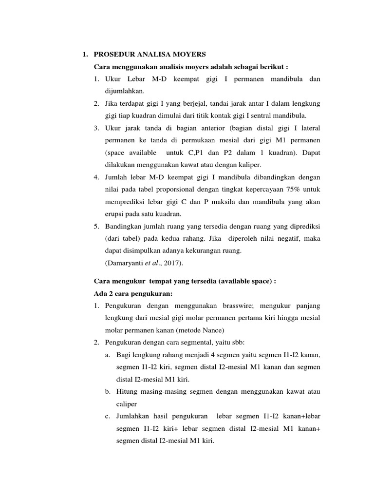 Cara menggunakan analisis moyers adalah sebagai berikut :