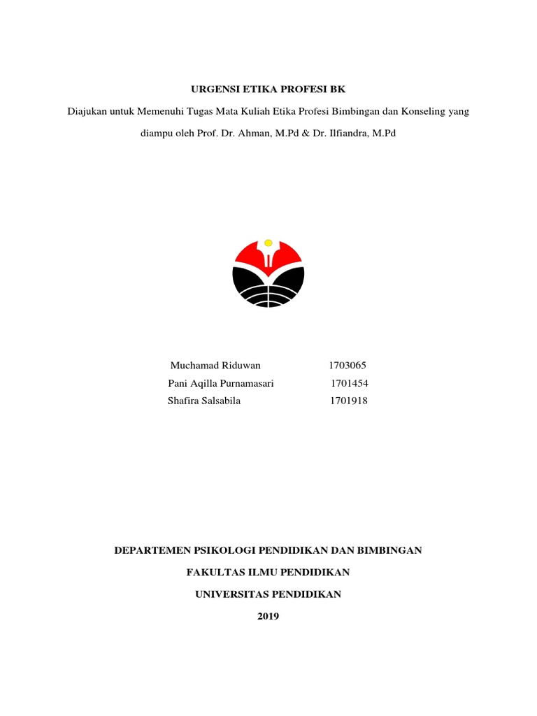 Diajukan untuk Memenuhi Tugas Mata Kuliah Etika Profesi Bimbingan dan Konseling yang