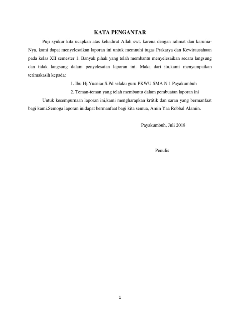 1. Ibu Hj.Yusniar,S.Pd selaku guru PKWU SMA N 1 Payakumbuh