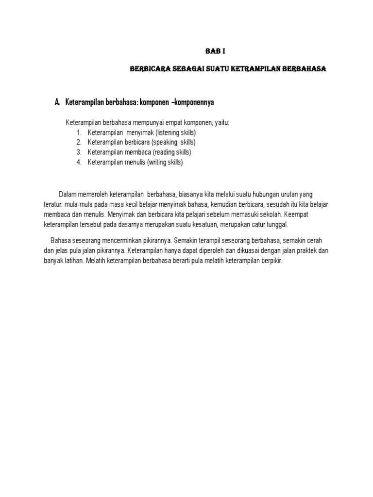 A. Keterampilan berbahasa: komponen –komponennya