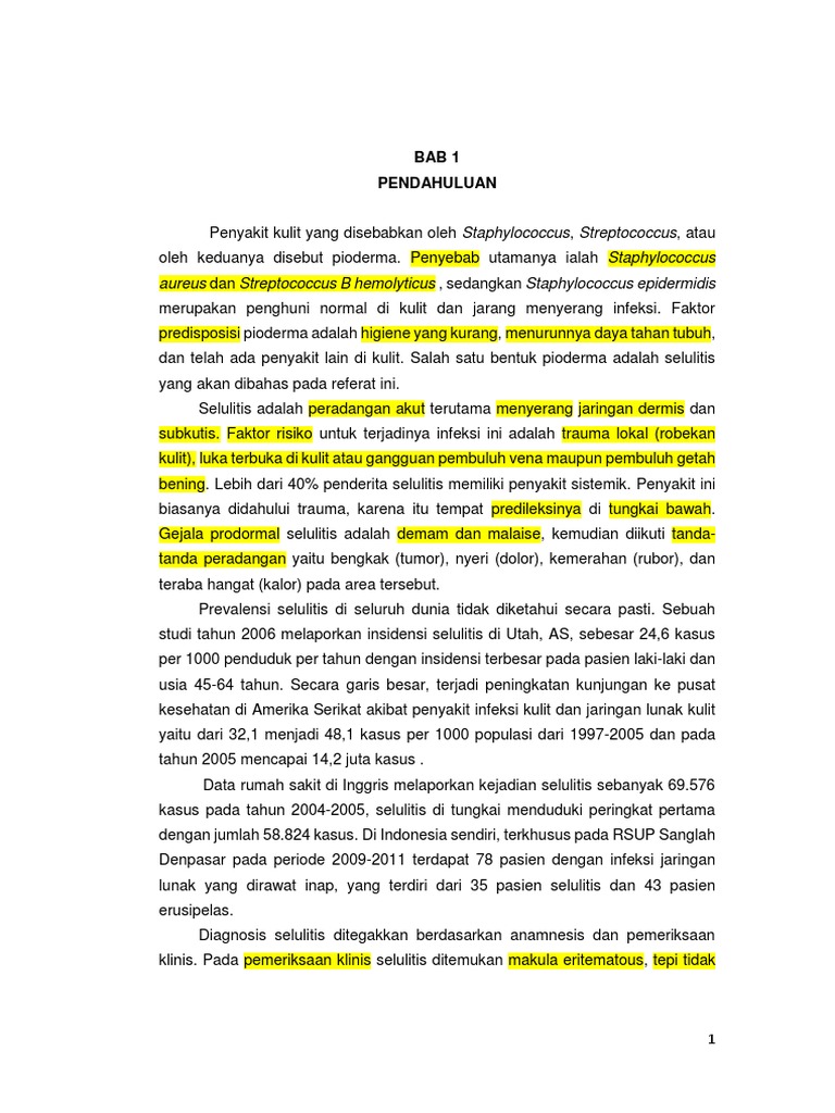 Selulitis merupakan infeksi bakterial akut pada kulit. Infeksi yang