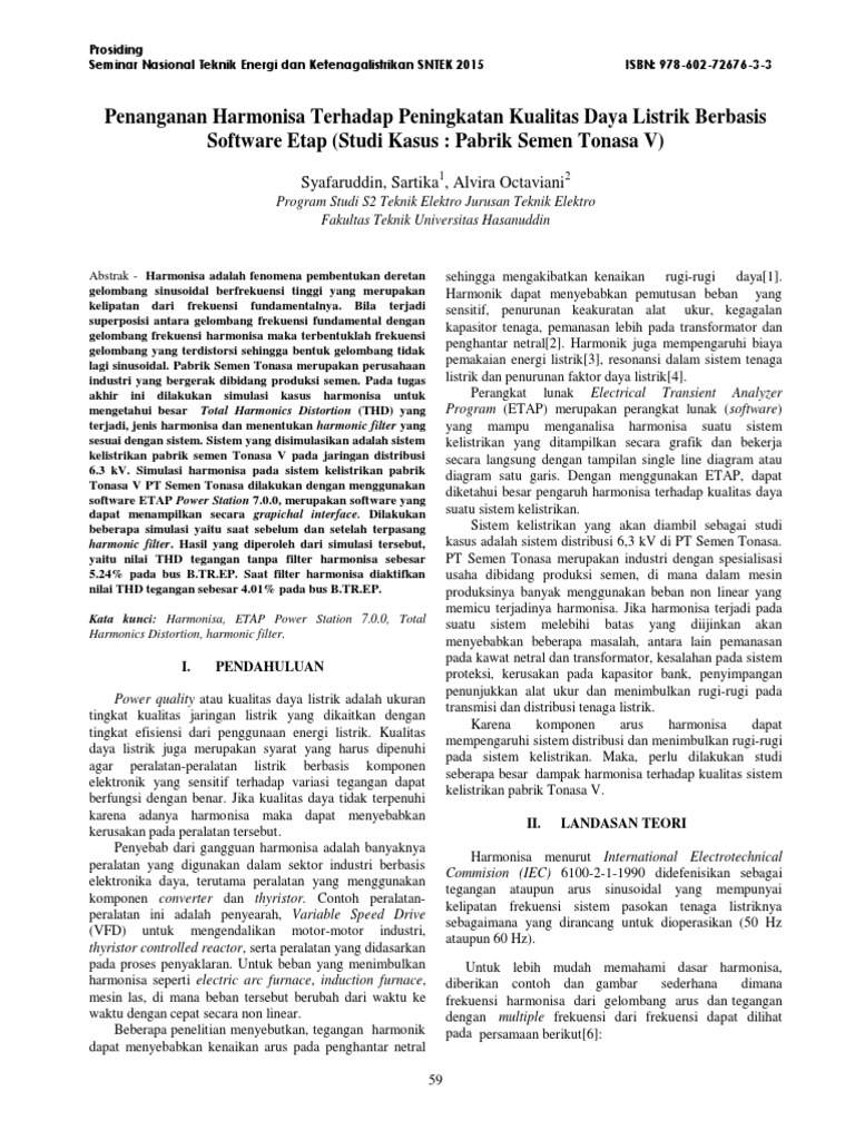 lagi sinusoidal. Pabrik Semen Tonasa merupakan perusahaan pemakaian energi listrik[3], resonansi dalam sistem tenaga