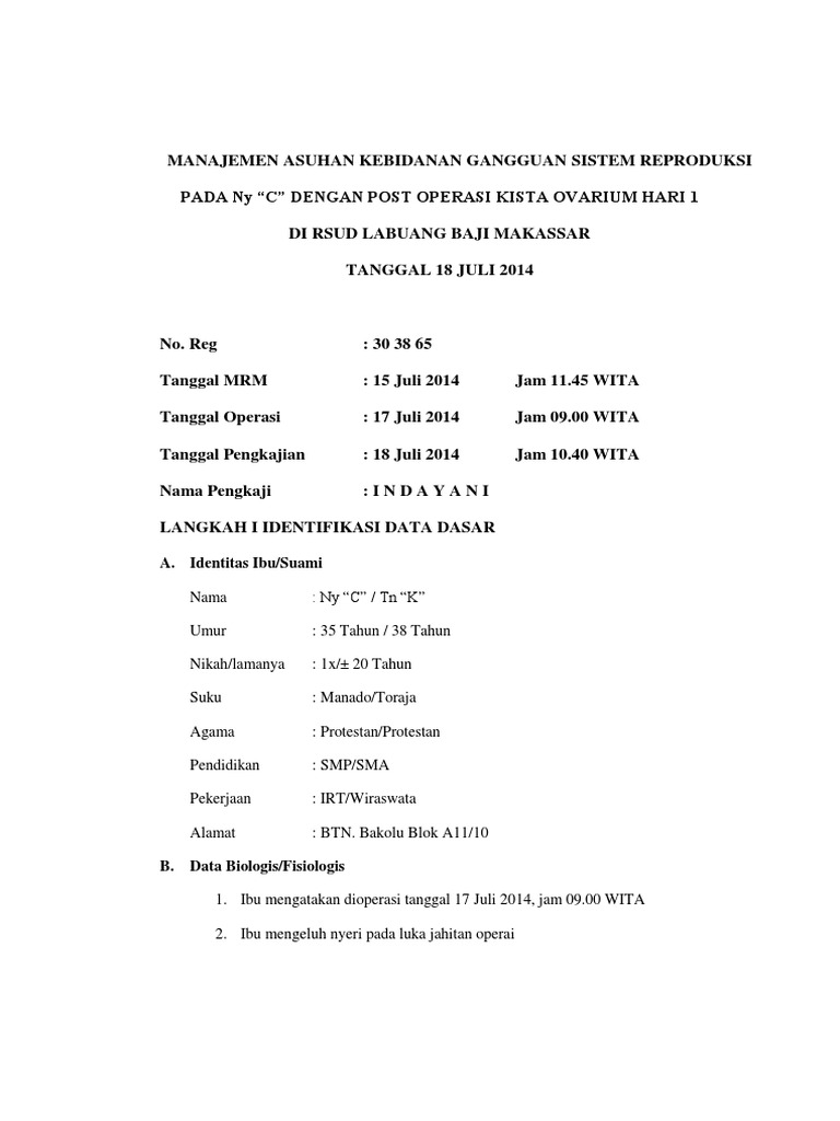 1. Ibu mengatakan dioperasi tanggal 17 Juli 2014, jam 09.00 WITA