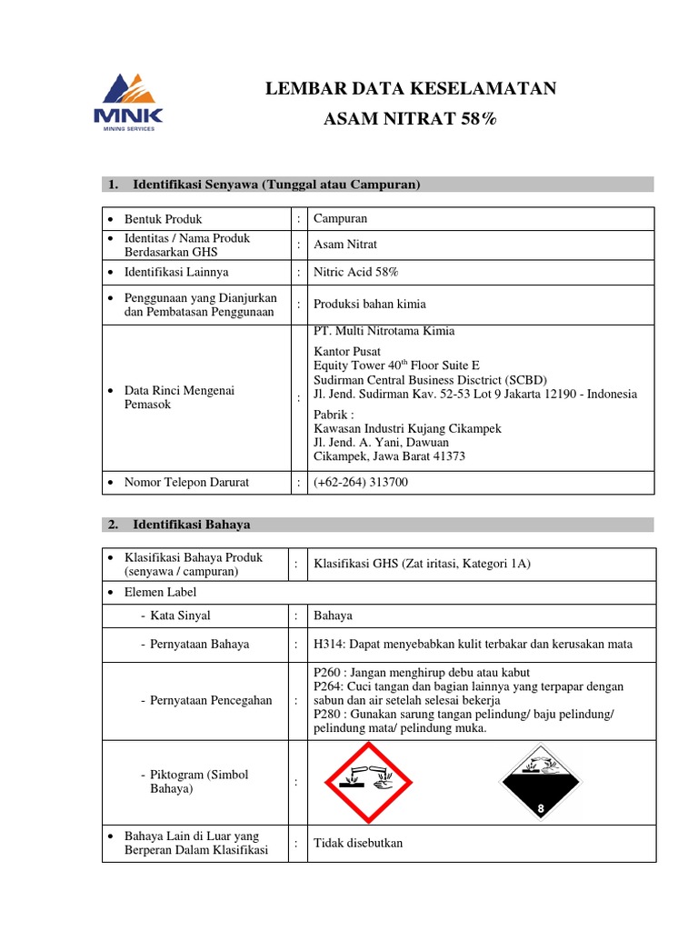 Penyusunan LDK - MSDS Nitric Acid 58% Anchem