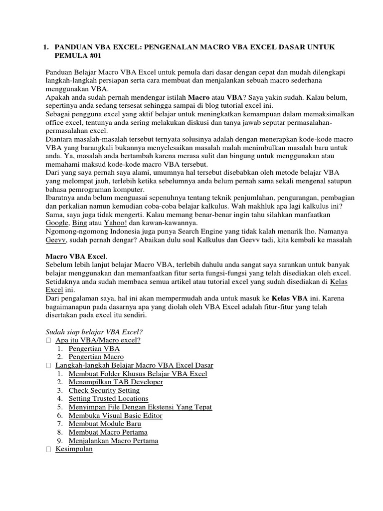Panduan Belajar Macro VBA Excel untuk pemula dari dasar dengan cepat dan mudah dilengkapi