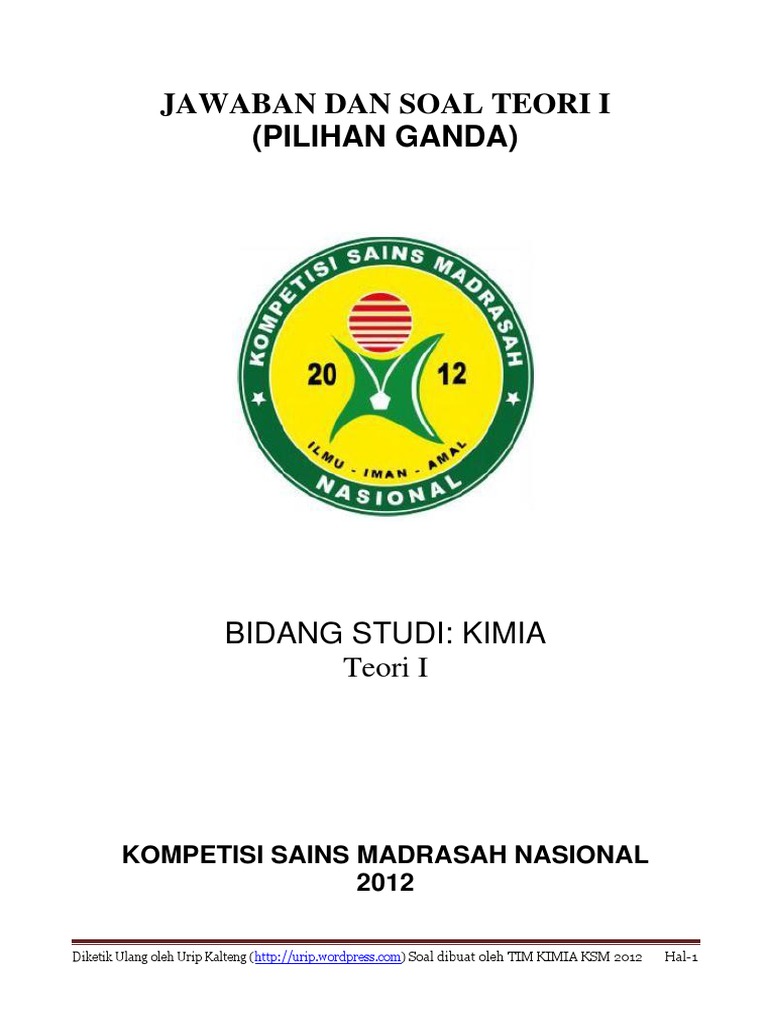 Diketik Ulang oleh Urip Kalteng (http://urip.wordpress.com) Soal dibuat oleh TIM KIMIA KSM 2012 Hal-1