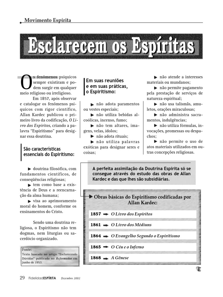 ção da alma humana; Obras básicas do Espiritismo codificadas por
