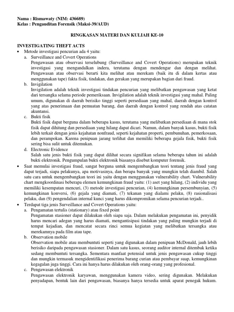 Kelas : Pengauditan Forensik (Maksi-39/AUD)