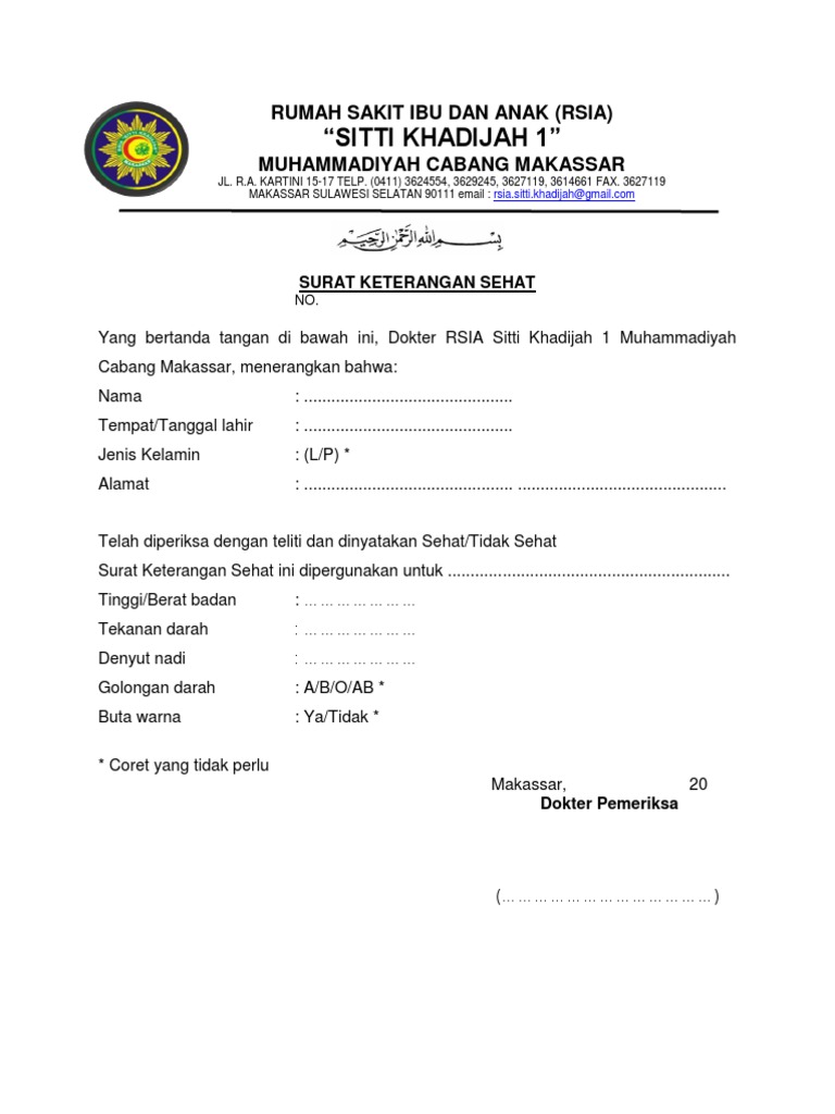 Yang bertanda tangan di bawah ini, Dokter RSIA Sitti Khadijah 1 Muhammadiyah