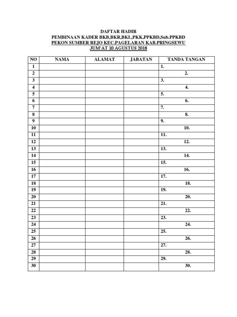 NO NAMA ALAMAT JABATAN TANDA TANGAN