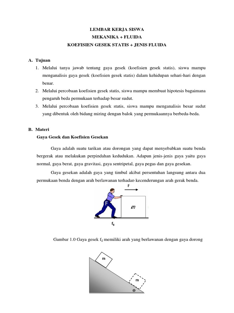 1. Melalui tanya jawab tentang gaya gesek (koefisien gesek statis), siswa mampu