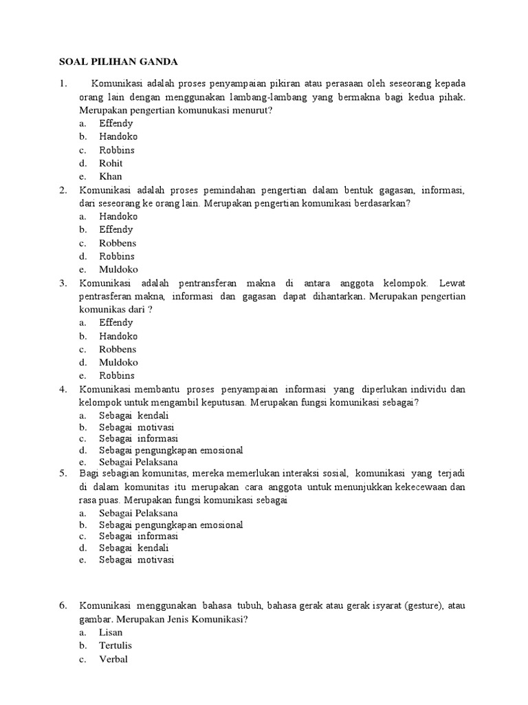 Soal Pilihan Ganda Komunikasi