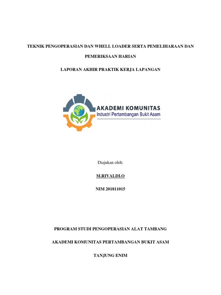 Laporan praktik kerja lapangan ini berjudul “Teknik Pengoperasian Wheel Loader