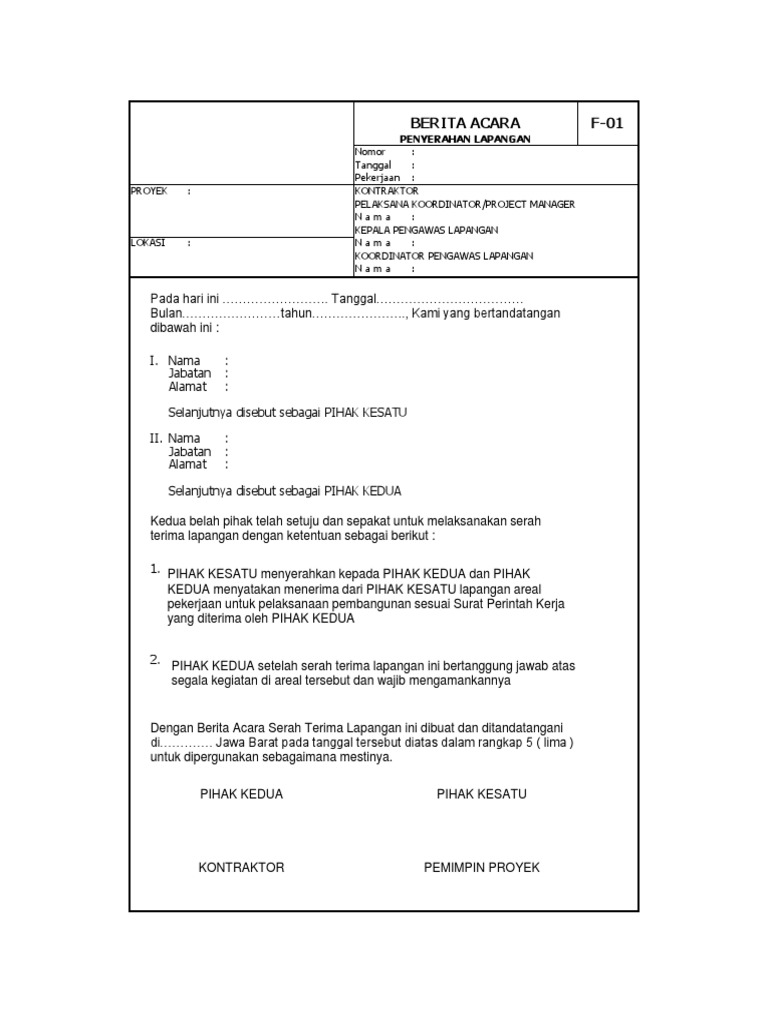 Dengan Berita Acara Serah Terima Lapangan ini dibuat dan ditandatangani