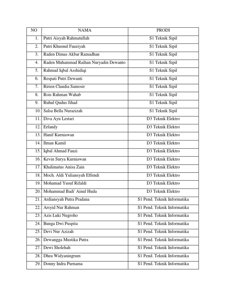 NO NAMA PRODI
