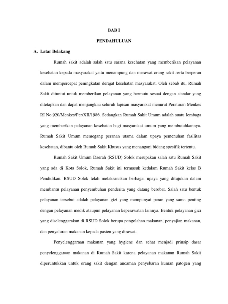 penyelenggaraan makanan di Rumah Sakit karena pelayanan makanan Rumah Sakit
