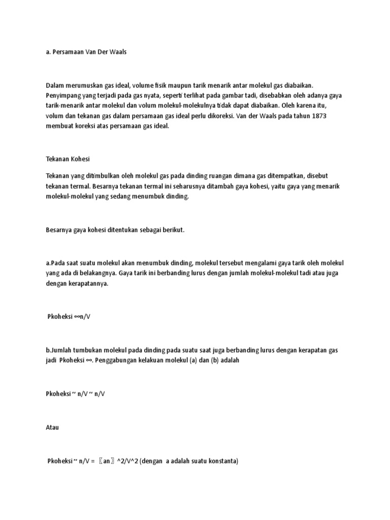 tarik-menarik antar molekul dan volum molekul-molekulnya tidak dapat diabaikan. Oleh karena itu,
