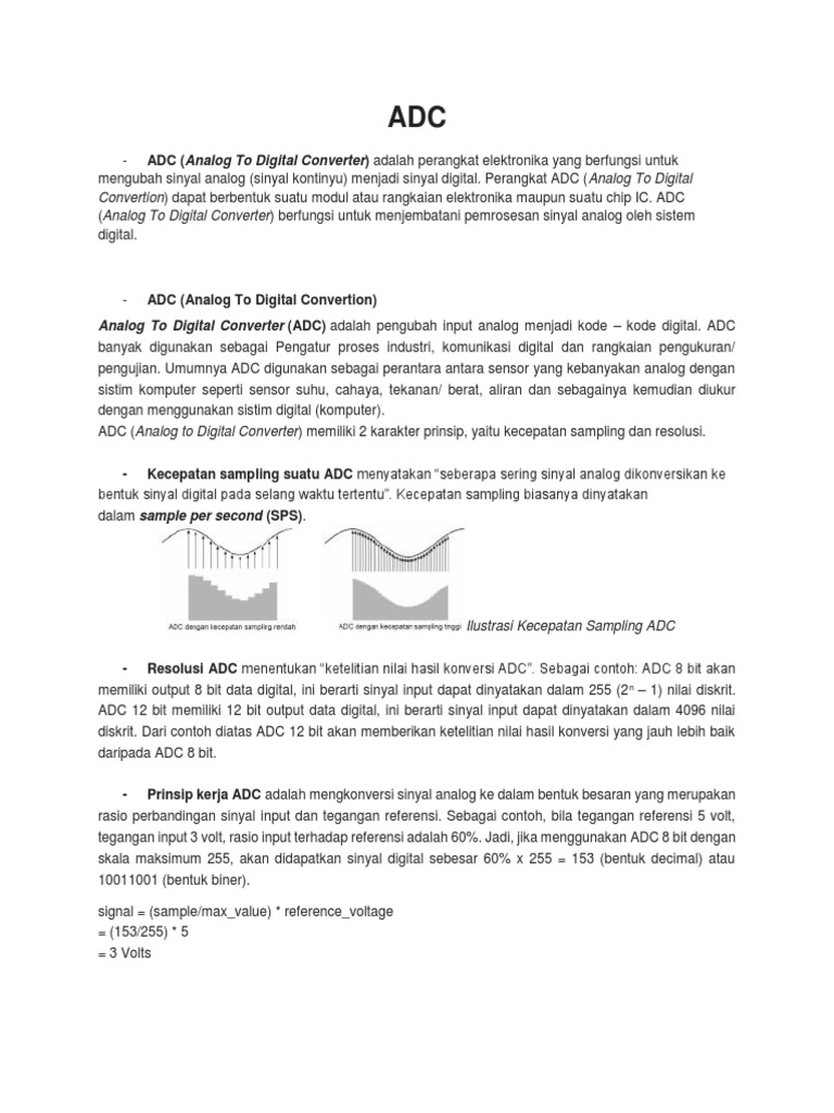 Convertion) dapat berbentuk suatu modul atau rangkaian elektronika maupun suatu chip IC. ADC