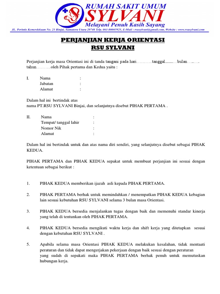 nama PT.RSU SYLVANI Binjai, dan selanjutnya disebut PIHAK PERTAMA .