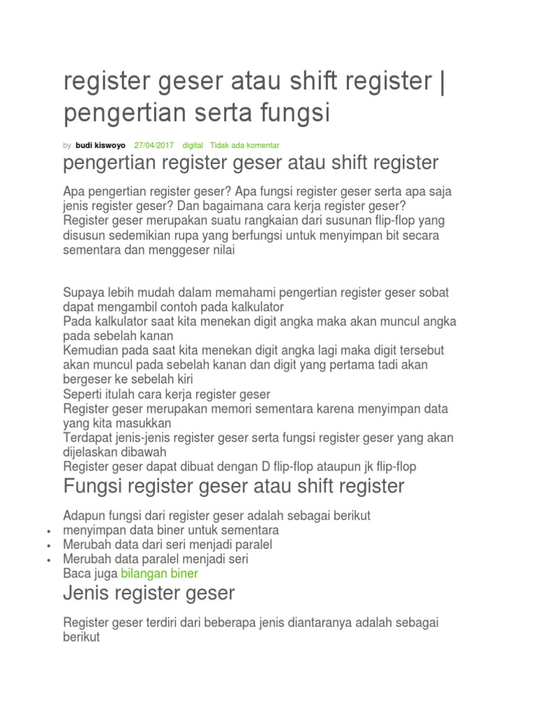 Apa pengertian register geser? Apa fungsi register geser serta apa saja