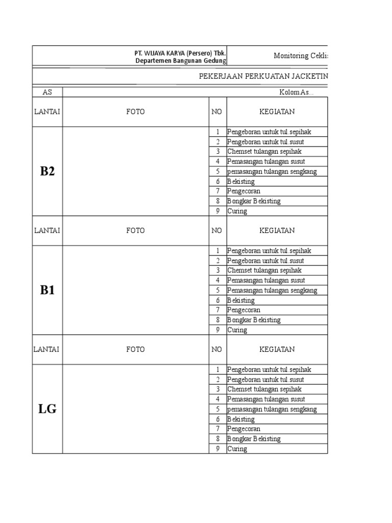 Monitoring Ceklist Jacketing Kolom
